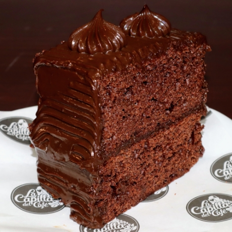 Keke esponjoso y húmedo de chocolate bañado y relleno en chocolate especial