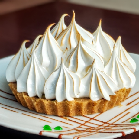 Galleta crocante rellena de crema a base de limón decorado con merengue