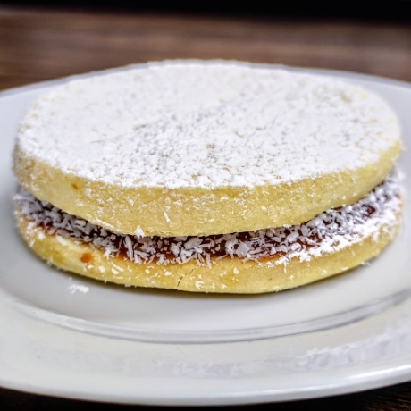 Galleta especial relleno de dulce de leche cubierto de coco rayado