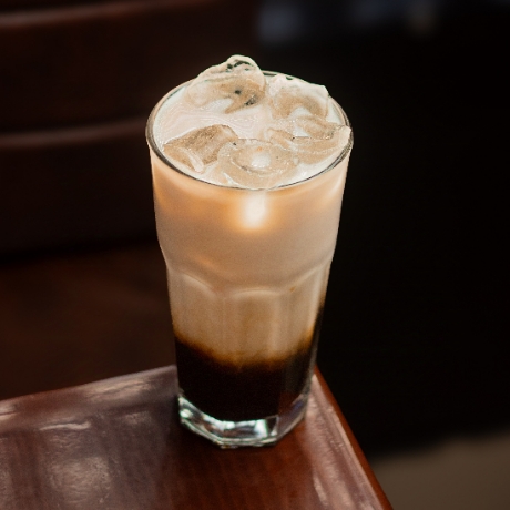 Dosis de expresso con leche cremosa y una ligera capa de espuma al vapor transformado al frío.