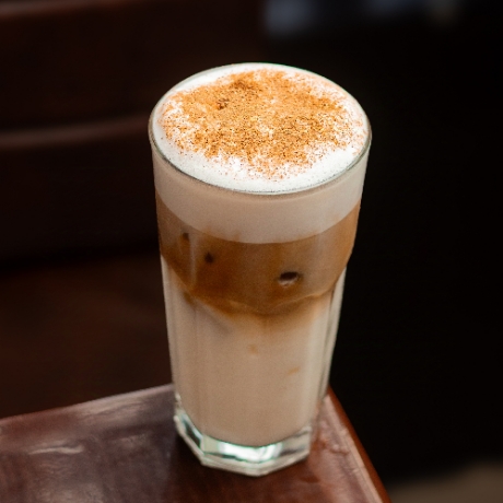 De origen italiano, mezcla de leche cremosa espumada y expreso decorado con toque de canela transformado al frío.
